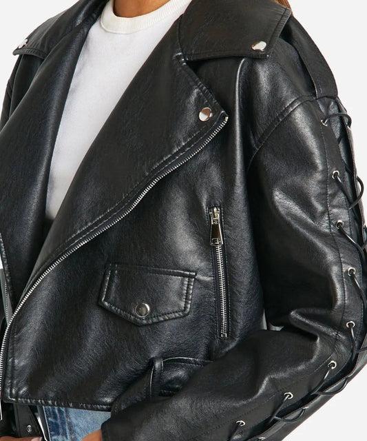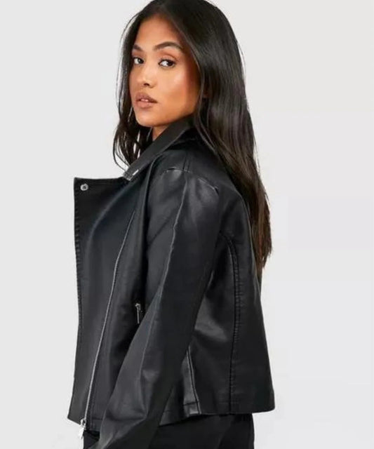 Women's Oversized Black Motorcycle Leather Jacket