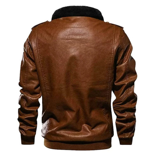 Men’s Brown Aviator Fur Collar Leather Jacket