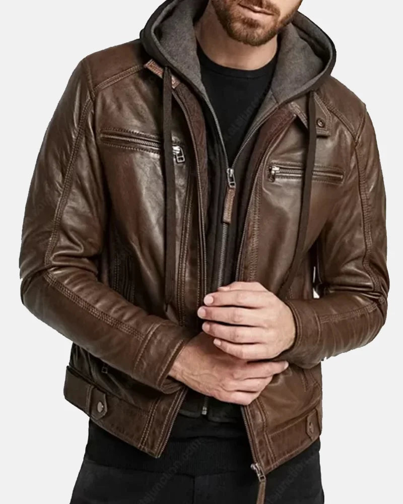 With its modern cut, iconic inspiration, and versatile appeal, the Leonardo DiCaprio Brown Leather Jacket with Hood isn’t just outerwear—it’s a statement of individuality and bold fashion taste.