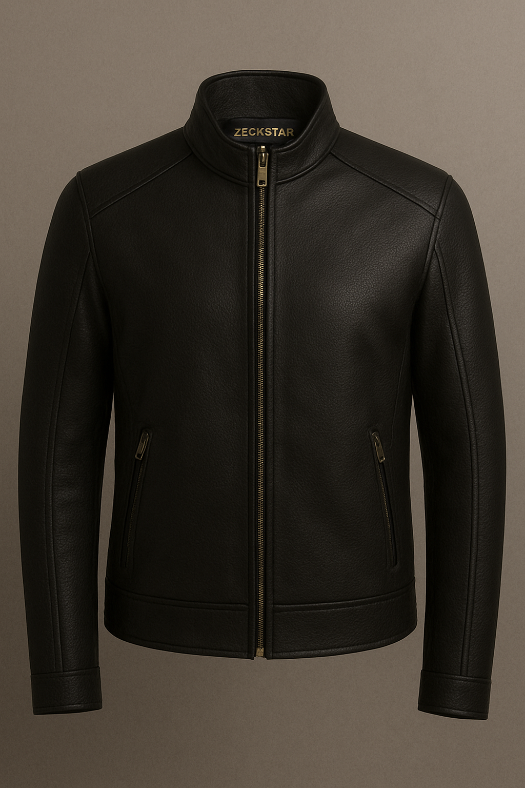 Crafted from high-grade faux leather, it offers a smooth, durable texture with a structured fit that maintains its shape over time. The sleek front features clean lines, a premium zipper closure, and zippered cuffs—perfect for those who value a modern, streamlined silhouette.