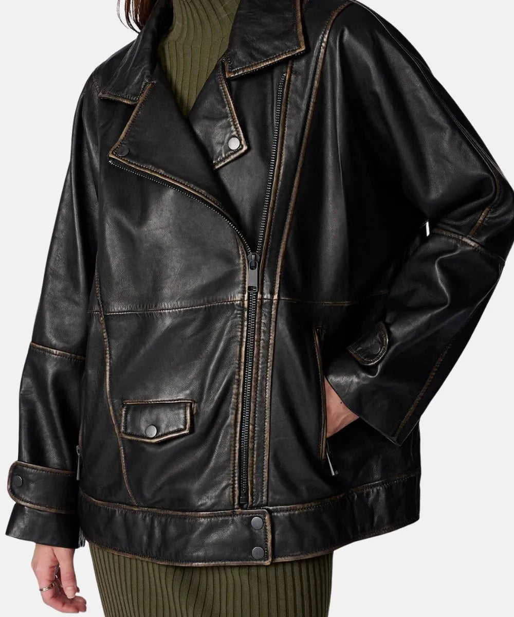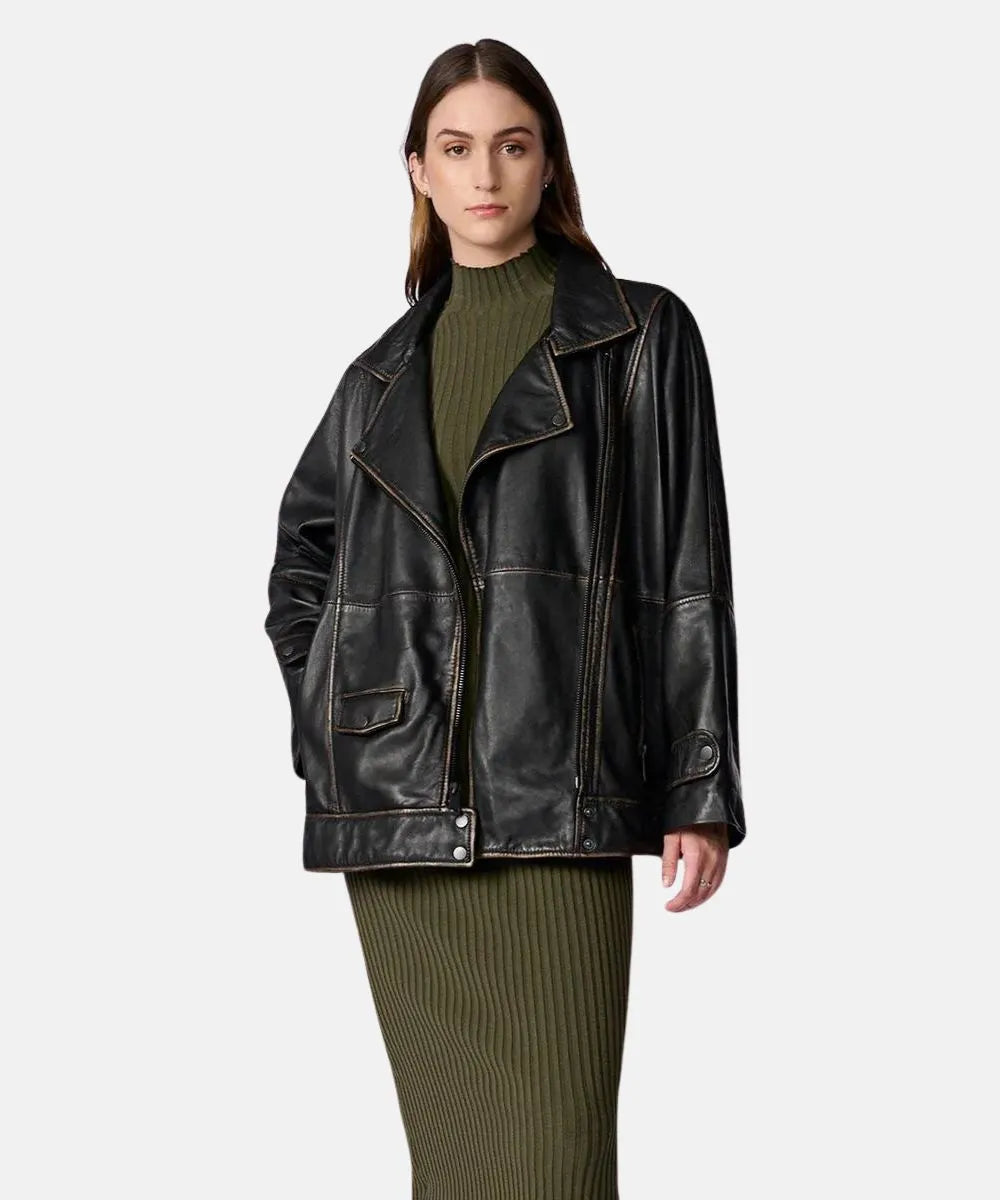 Women Brielle Black Oversized Leather Motorcycle Jacket