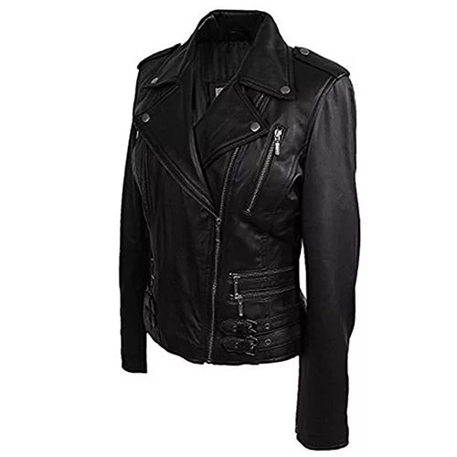 Women’s Black Biker Vintage Rock Style Leather Jacket